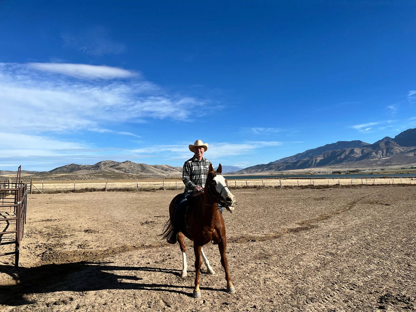 I love horses. I grew up riding with my cousins who lived in Eastern Oregon. This picture was taken in Mona, Utah where I’m riding a horse named Duke. Horses can teach you a lot about leadership.
